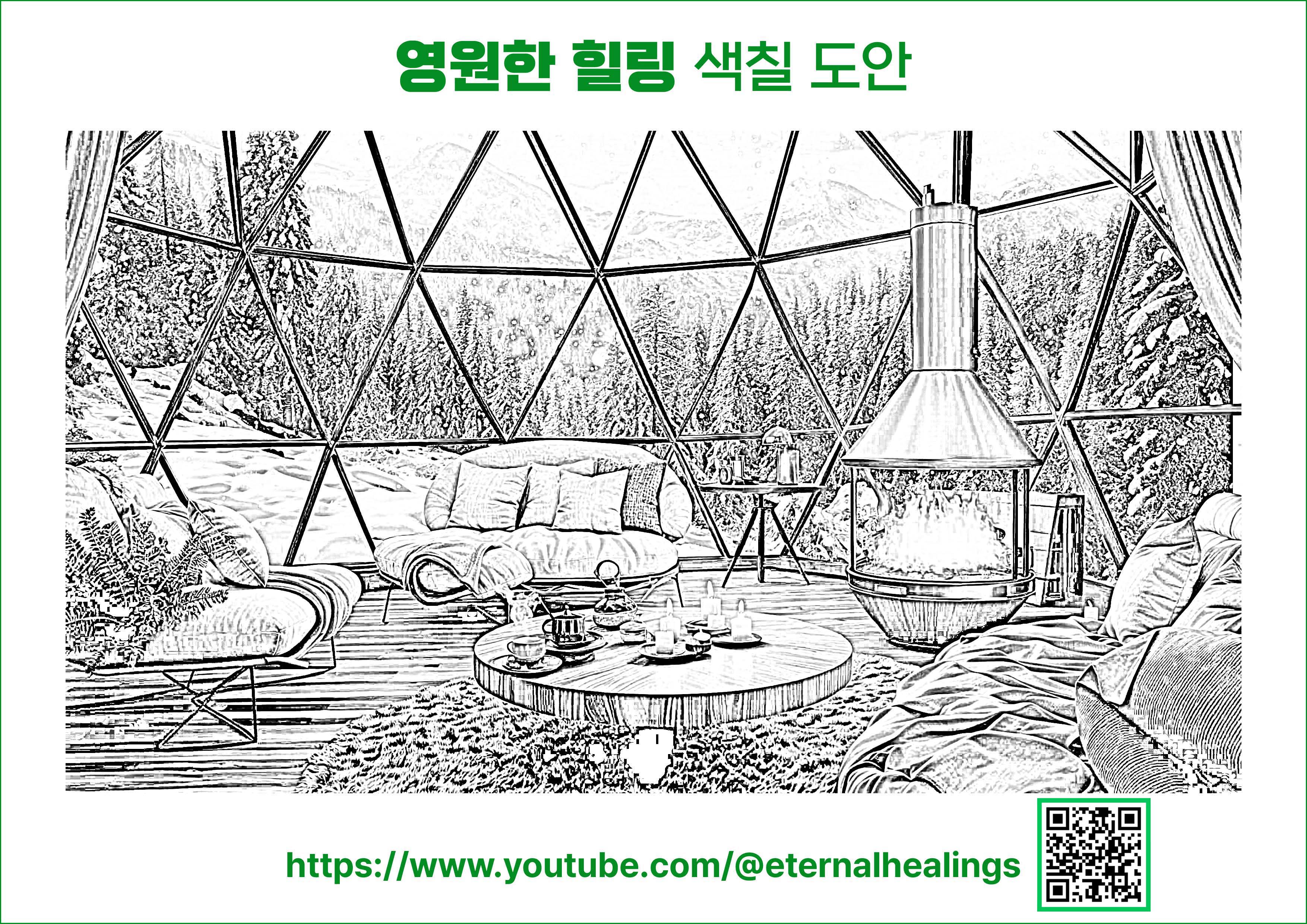 색칠공부도안 컬러링 겨울 시골 초가집 협동화 이미지 색칠하기 프린트 무료다운 어르신 노인