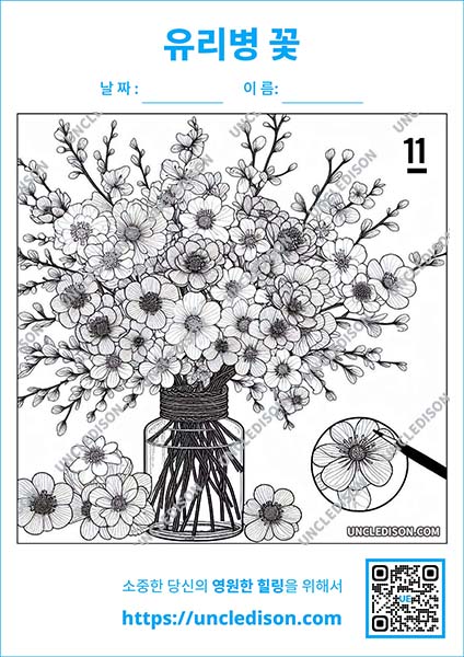유리병에 담긴 꽃 색칠하기 색칠공부도안 유아 어르신 노인 시니어 프린트 인지프로그램