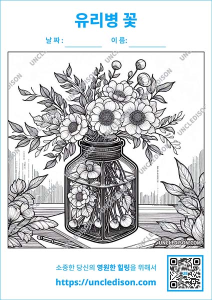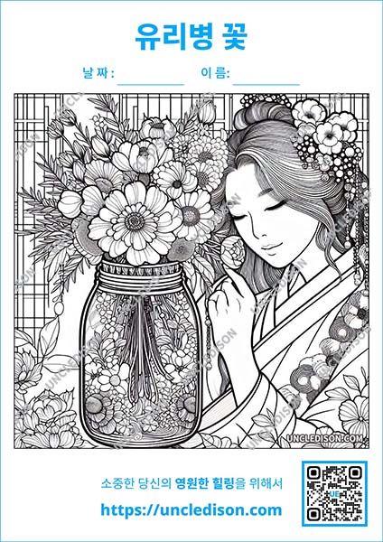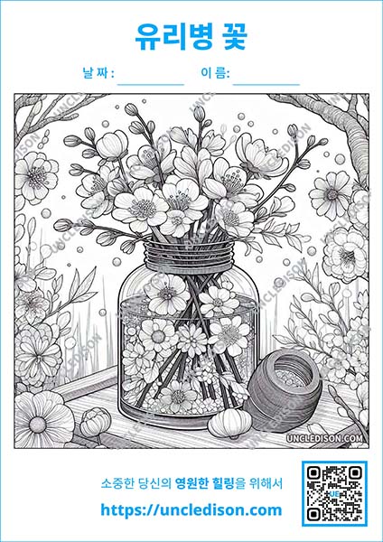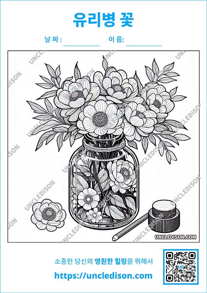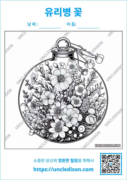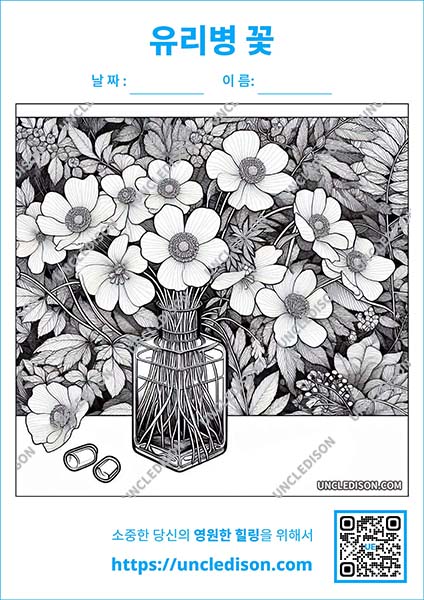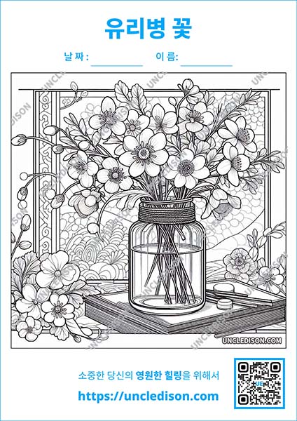 유리병에 담긴 꽃투명 유리병에 담긴 아름다운 꽃 색칠 도안을 만들어 보았습니다. 이 도안들은 다양한 색깔과 형태의 꽃들이 투명한 유리병 속에서 마치 요정의 정원처럼 아름답게 빛나는 모