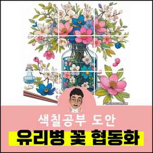 유리병에 담긴 꽃 색칠하기 컬러링 9분할 3X3 협동화 색칠공부도안 유아 어르신 노인 시니어 프린트 인지프로그램 치매예방 활동지