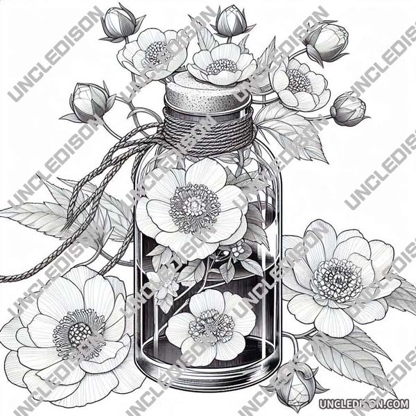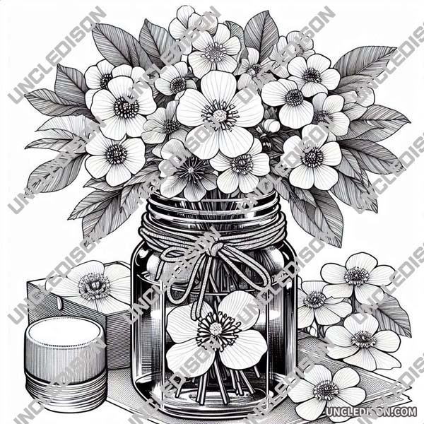 유리병에 담긴 꽃 이미지 일러스트 무료 다운로드 도안