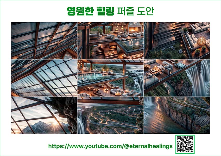몰아치는 빗소리와 멀리서 들리는 천둥소리, 바람소리, 타오르는 장작 소리는 마음을 진정시키고 편안한 수면을 유도합니다. 이 아름다운 폭포수 빌라에서 당신은 안전하고 편안한 휴식을 취할 수 있습니다. 이곳은 바깥 세계의 소란 속에서도 마음의 평화를 찾을 수 있는 공간입니다. 함께 이 아름다운 풍경을 감상하며, 마음의 안정과 안락함을 느껴보세요.