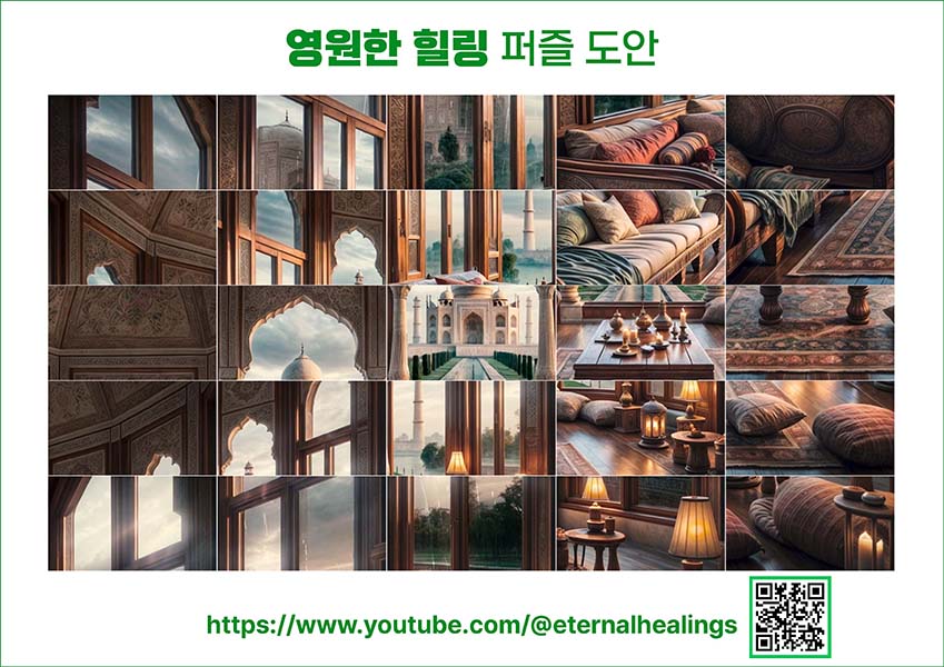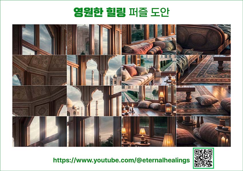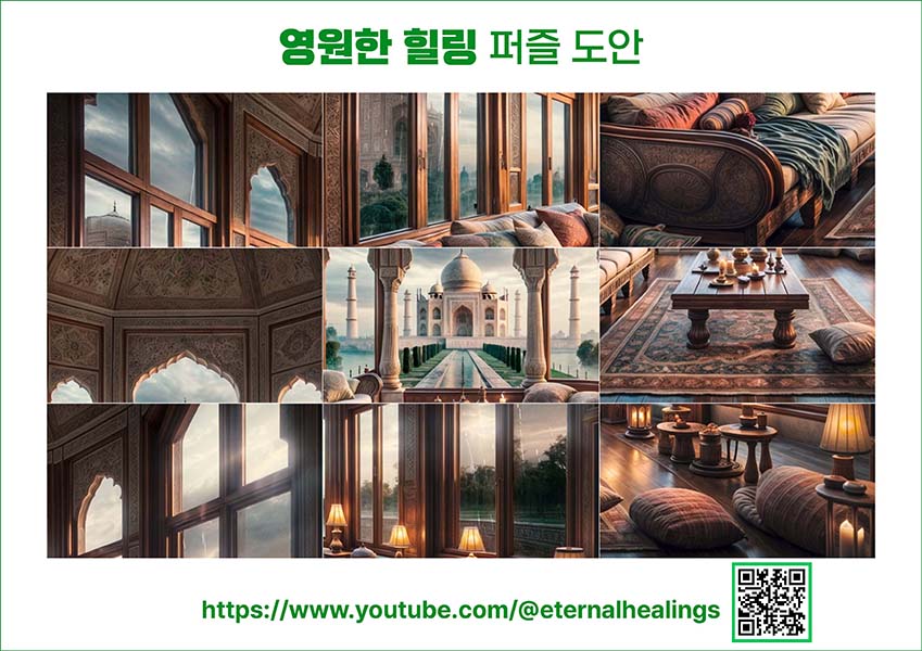 타지마할의 풍경과 함께하는 이 시간은 당신의 스트레스를 해소하고, 마음의 평온함을 선사합니다. 빗방울이 창문을 두드리는 소리는 당신을 부드럽게 수면의 세계로 인도하며, 꿈속에서도 이 평화로운 순간이 계속되기를 바랍니다. 이 비 오는 밤, 타지마할의 아름다움과 자연의 소리에 둘러싸여, 편안하고 안정적인 휴식을 취하시길 바랍니다. 당신의 마음이 가벼워지고, 내일을 위한 에너지를 충전하는 시간이 되기를 소망합니다.