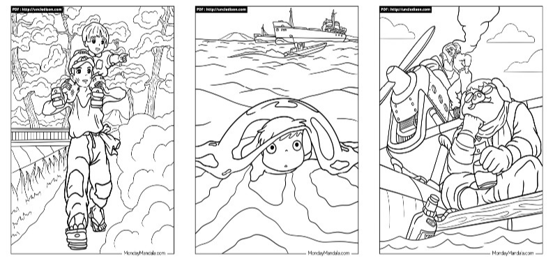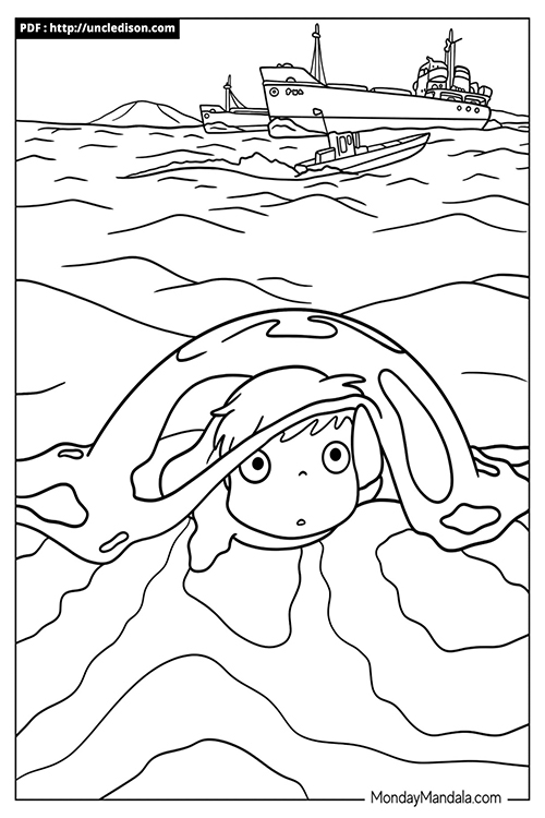 벼랑위의 포뇨(Ponyo on the Cliff by the Sea): 따분한 바다 생활에서 탈출한 인면어 포뇨와 소년 소스케의 우정을 중심으로, 포뇨가 인간으로 돌아가기 위한 모험을 다룹니다. 포뇨는 소스케의 도움을 받아 물고기 소년으로 변화하며, 인간으로 돌아가기 위한 여정에 나서게 됩니다.