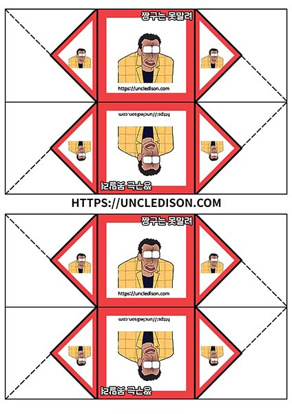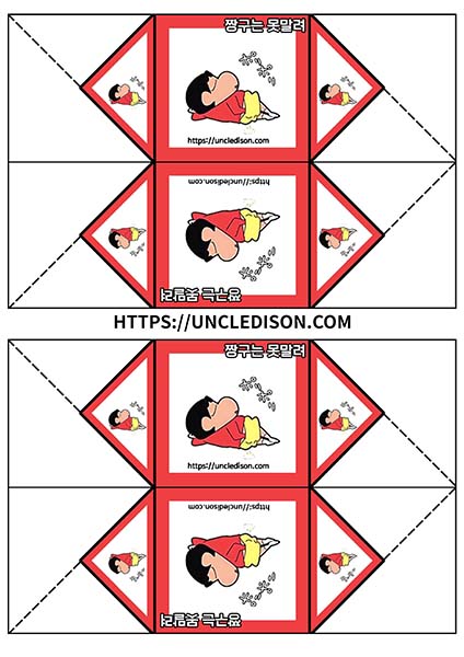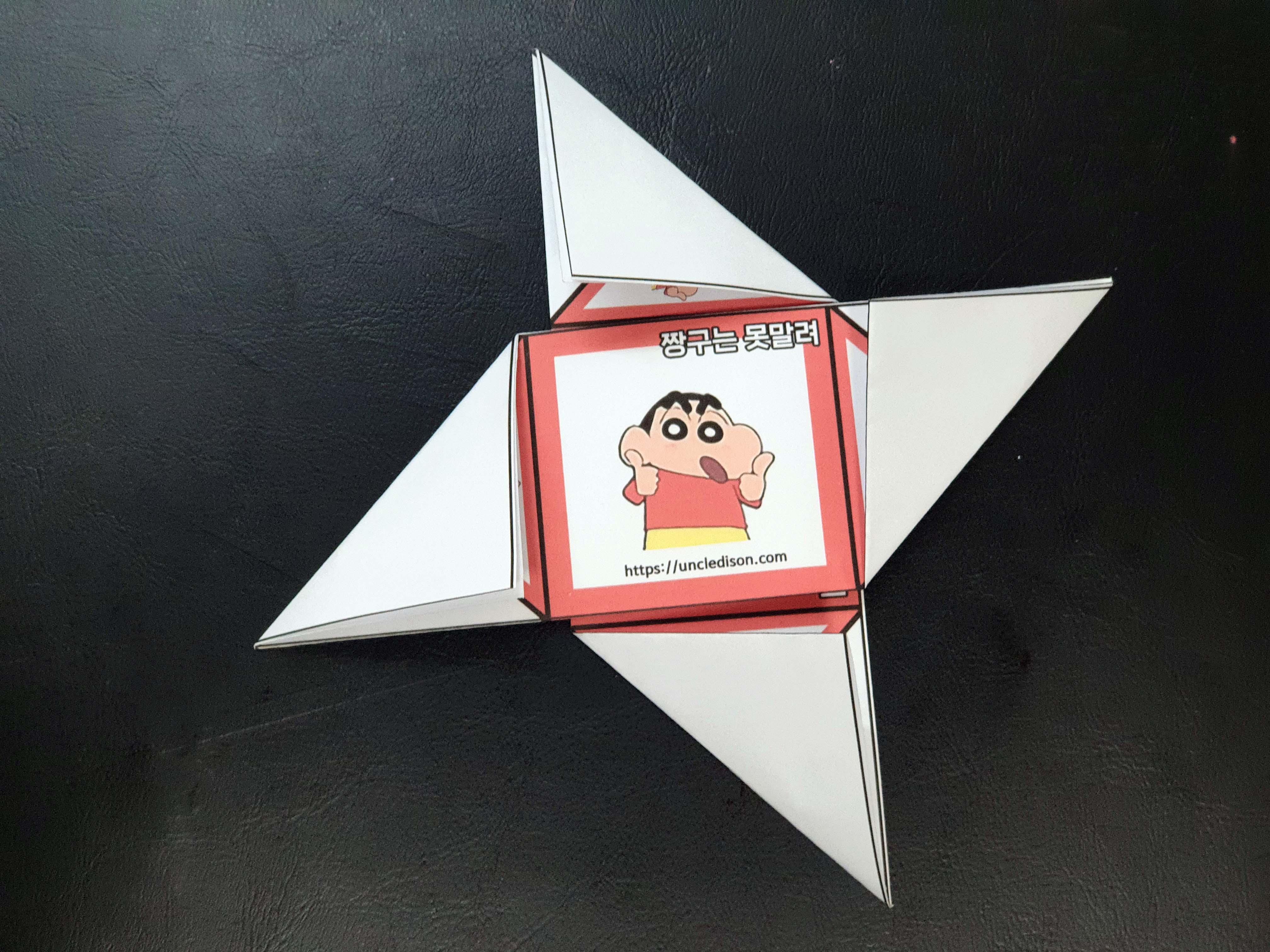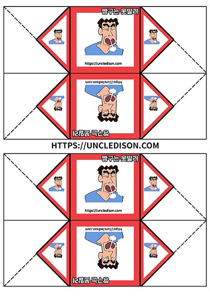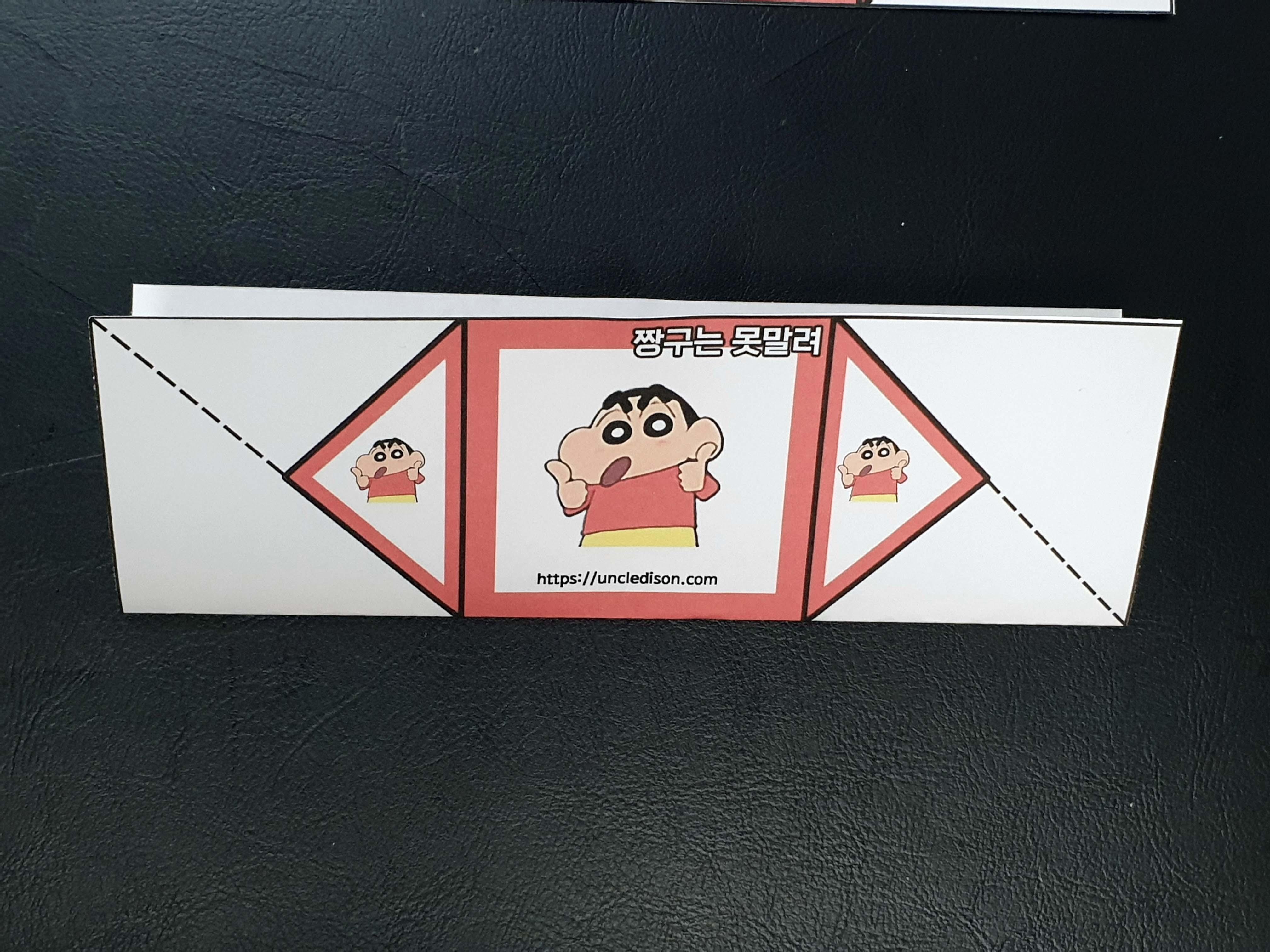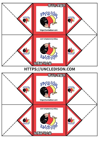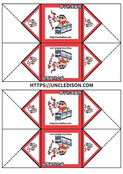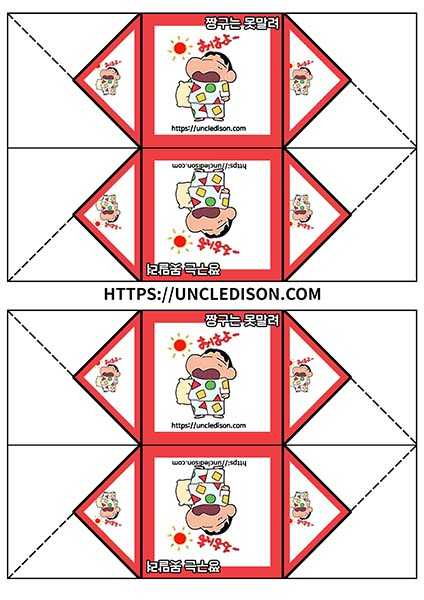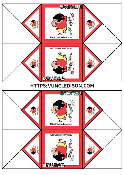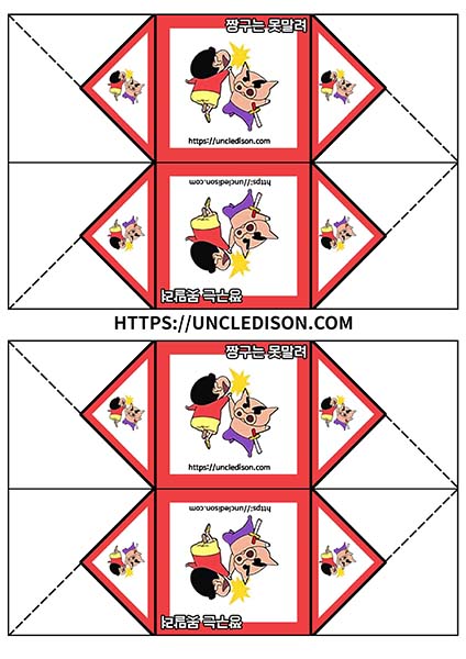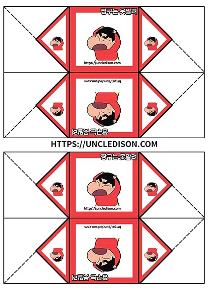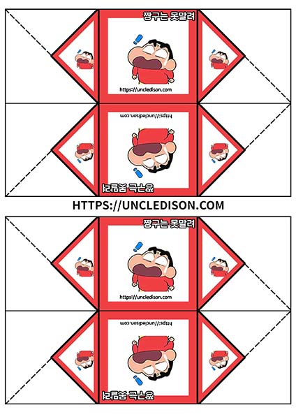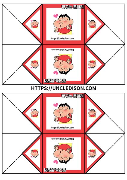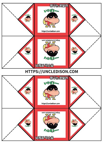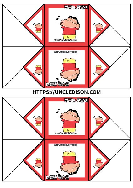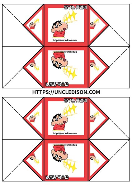 귀여운 짱구 캐릭터로 딱지를 만들어 보았습니다. A4용지 1장을 프린트를 하면 1장의 딱지가 완성됩니다.