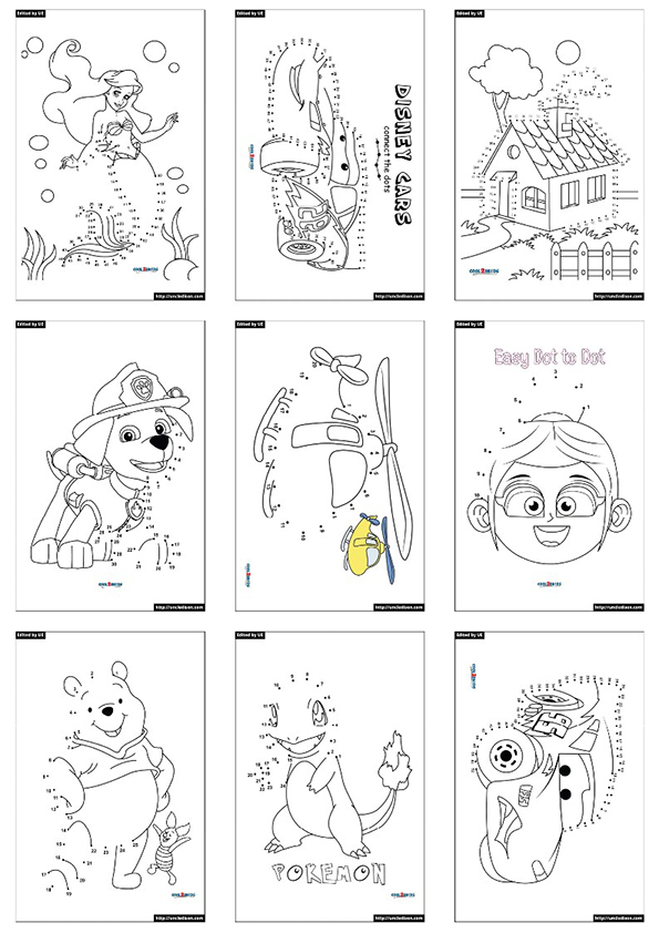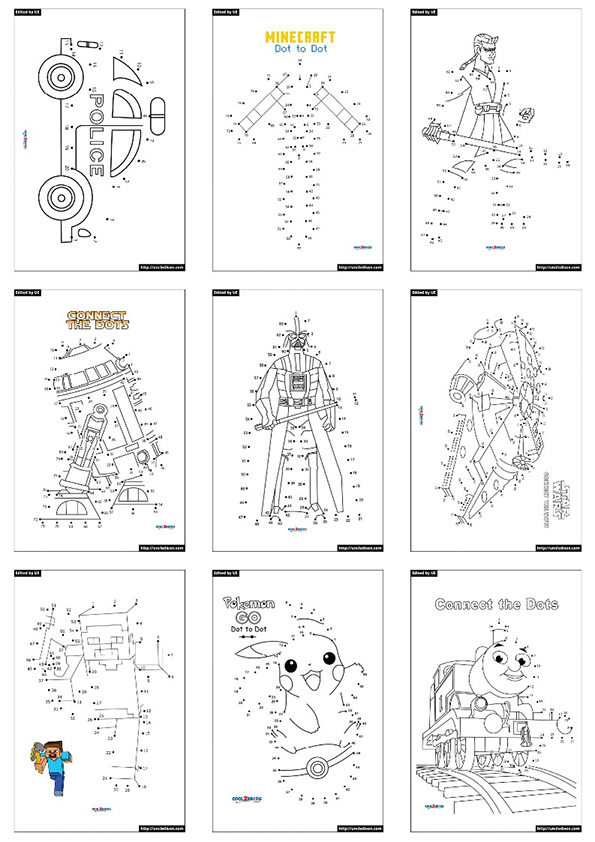 아래에 점잇기 색칠도안을 각각 첨부했으니 무료로 다운하세요