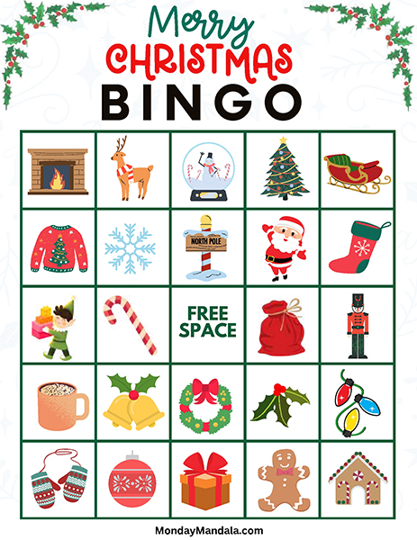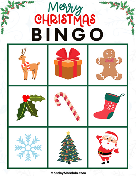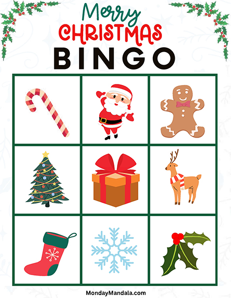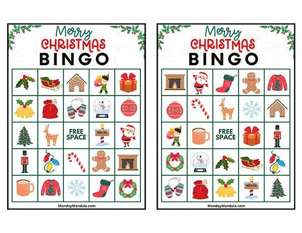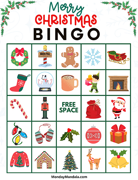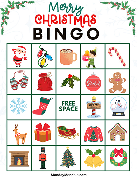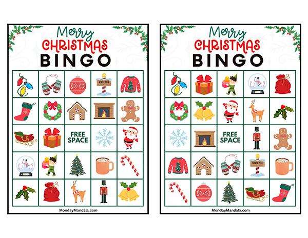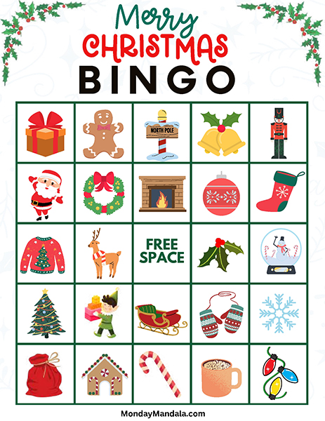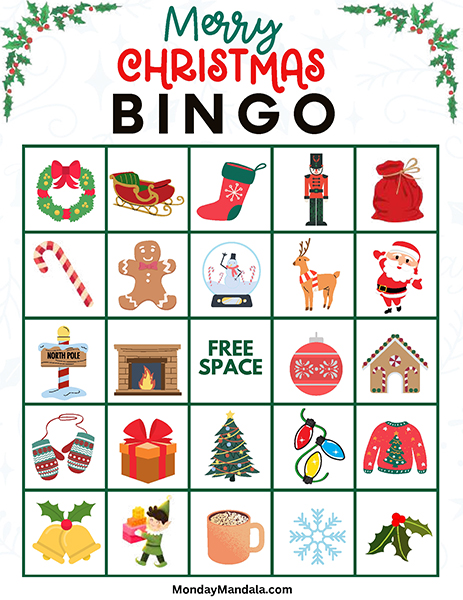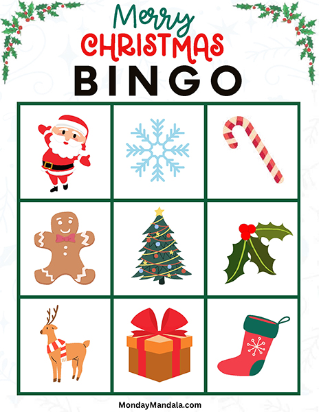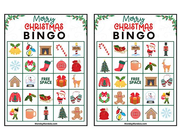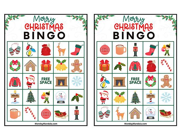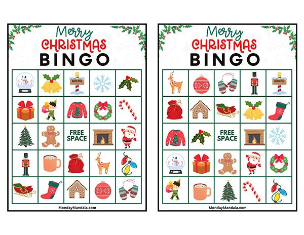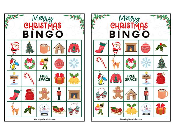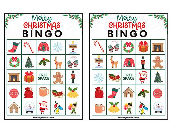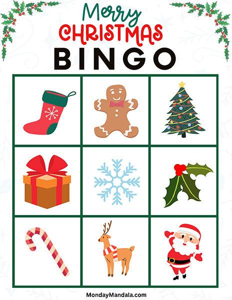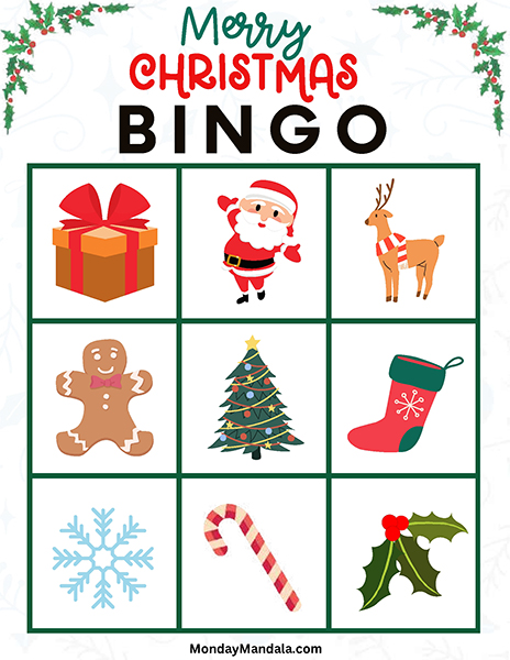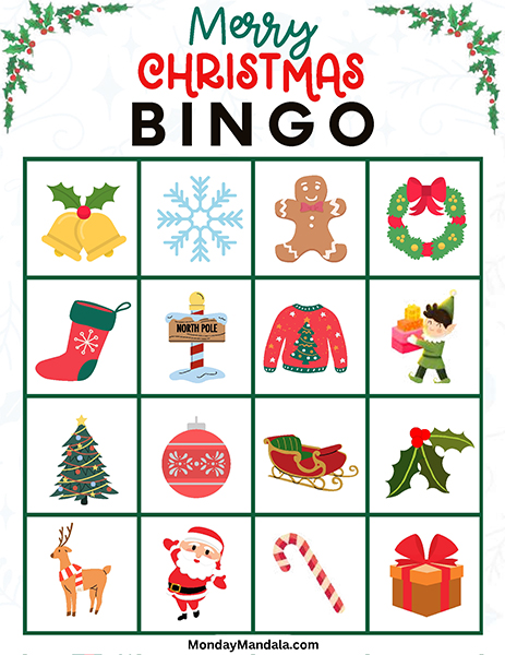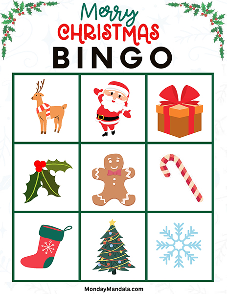 올해는 특별한 크리스마스 빙고게임으로 가족과 친구들과 함께 즐거운 시간을 보내보세요! 생강빵, 산타클로스, 루돌프, 썰매, 종, 눈송이, 사탕막대, 싼타양말, 장갑, 호두깍기인형, 화로, 그리고 방울 등 다양한 크리스마스 그림으로 가득한 이 빙고게임은 여러분에게 환상적인 크리스마스 분위기를 선사할 것입니다!