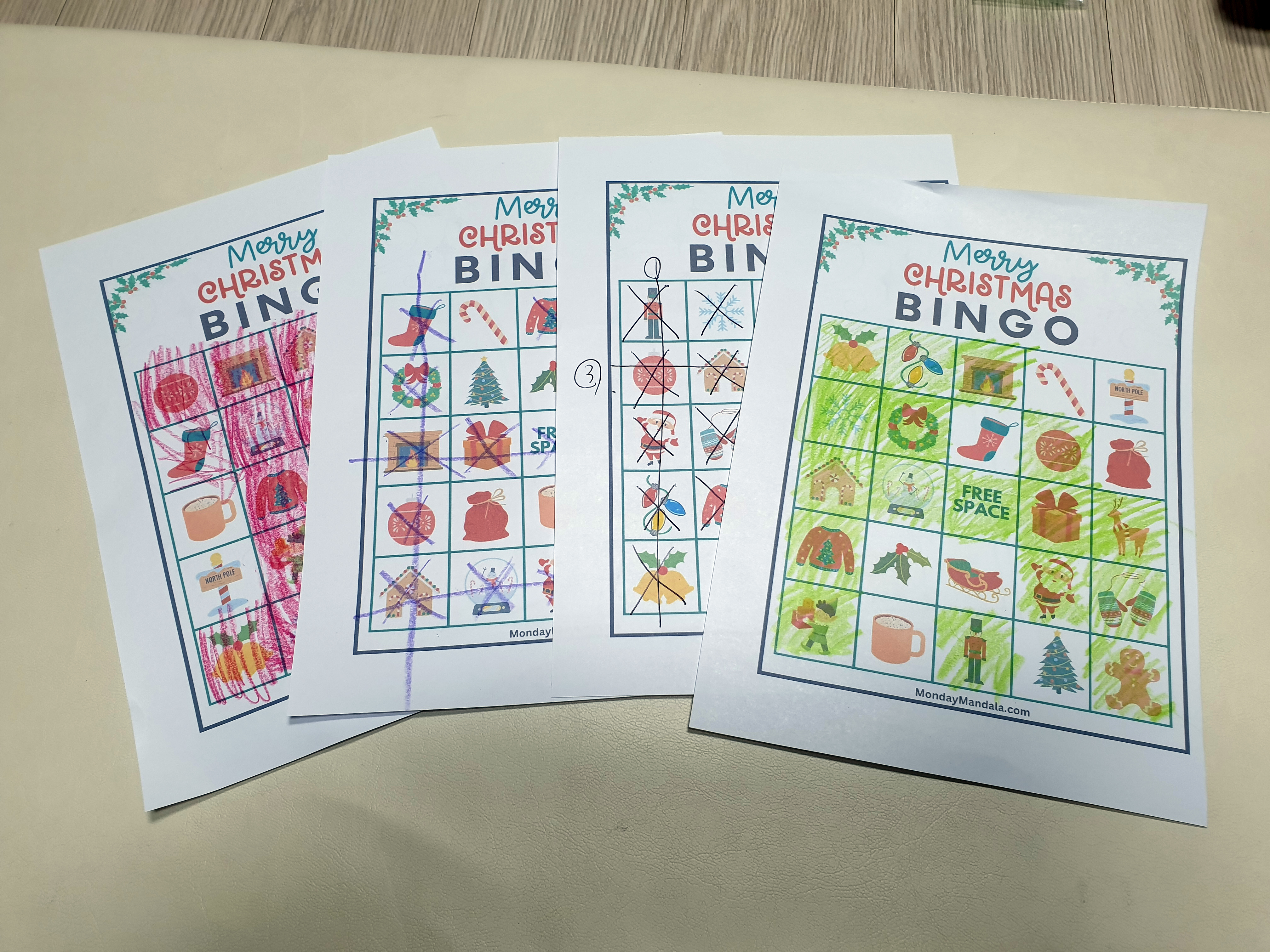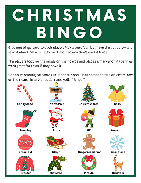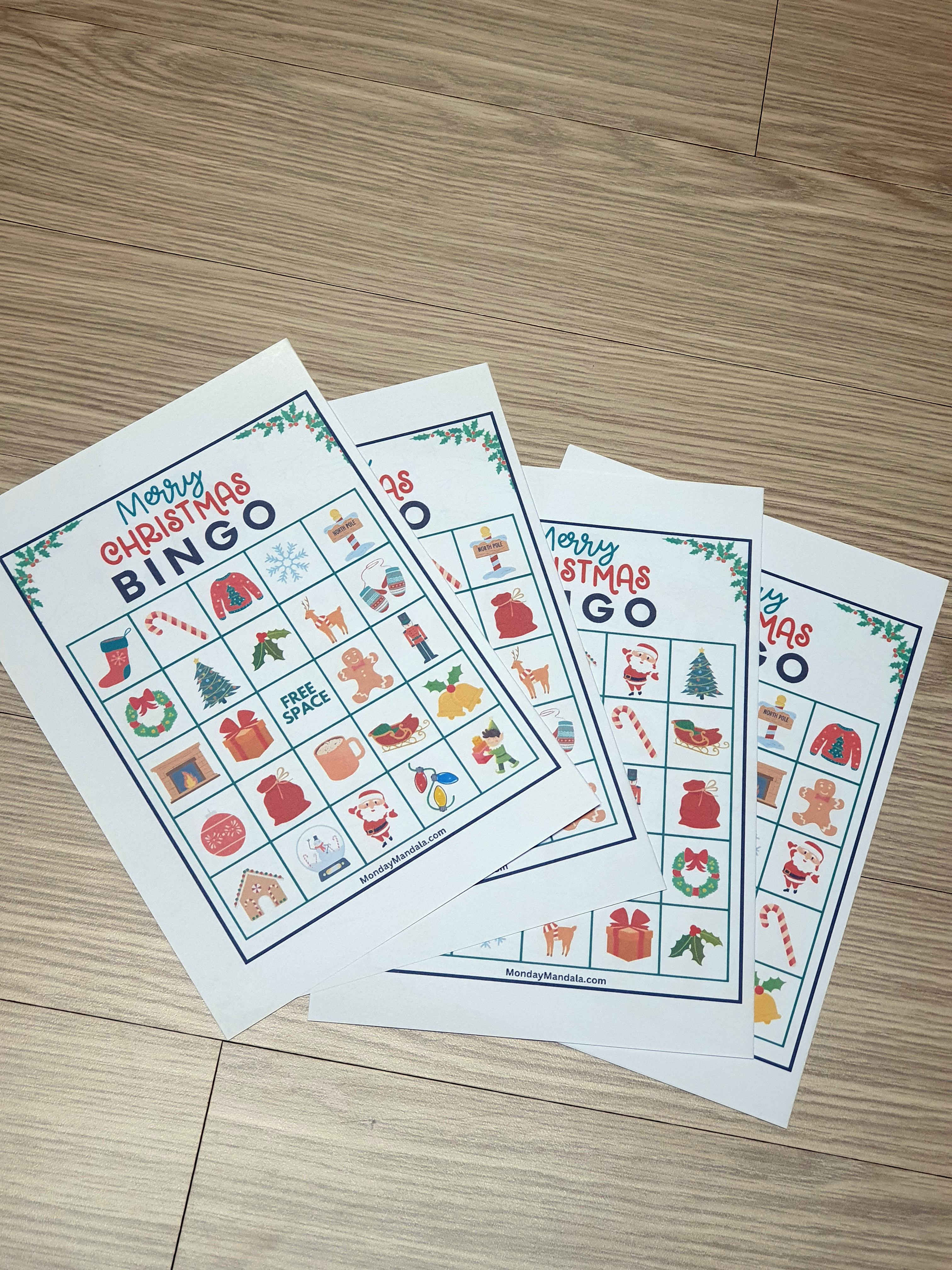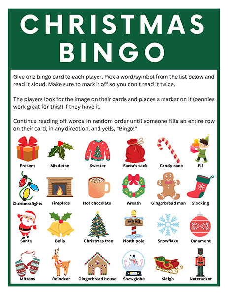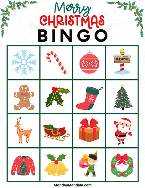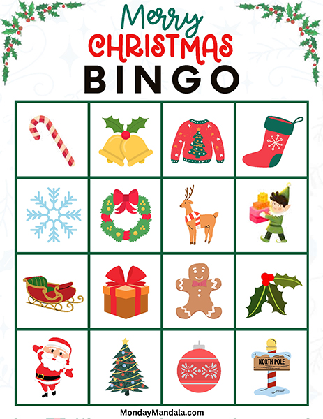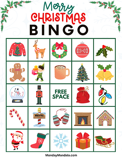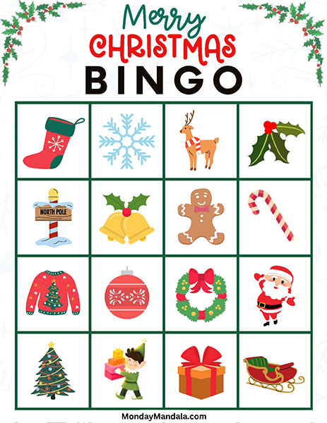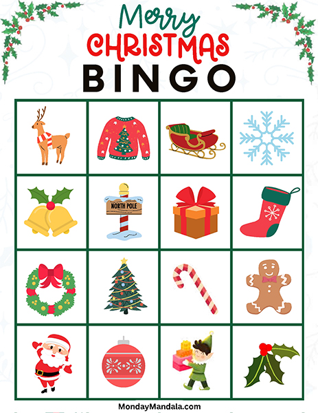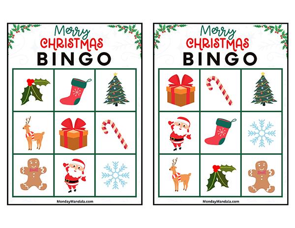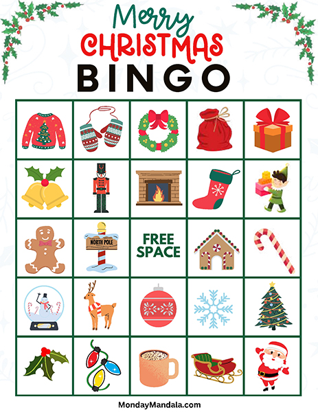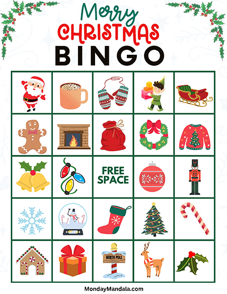 올해는 특별한 크리스마스 빙고게임으로 가족과 친구들과 함께 즐거운 시간을 보내보세요! 생강빵, 산타클로스, 루돌프, 썰매, 종, 눈송이, 사탕막대, 싼타양말, 장갑, 호두깍기인형, 화로, 그리고 방울 등 다양한 크리스마스 그림으로 가득한 이 빙고게임은 여러분에게 환상적인 크리스마스 분위기를 선사할 것입니다!