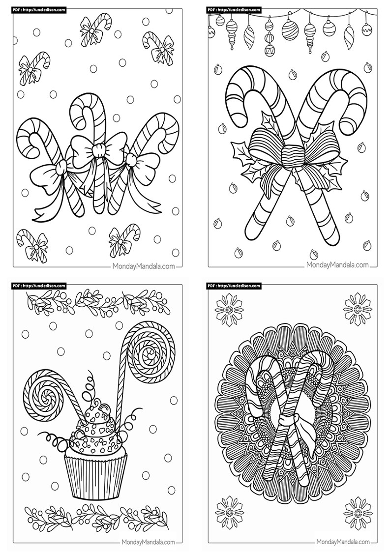 크리스마스 색칠공부 도안 조명, 화환, 사탕 장식 PDF 무료 프린트