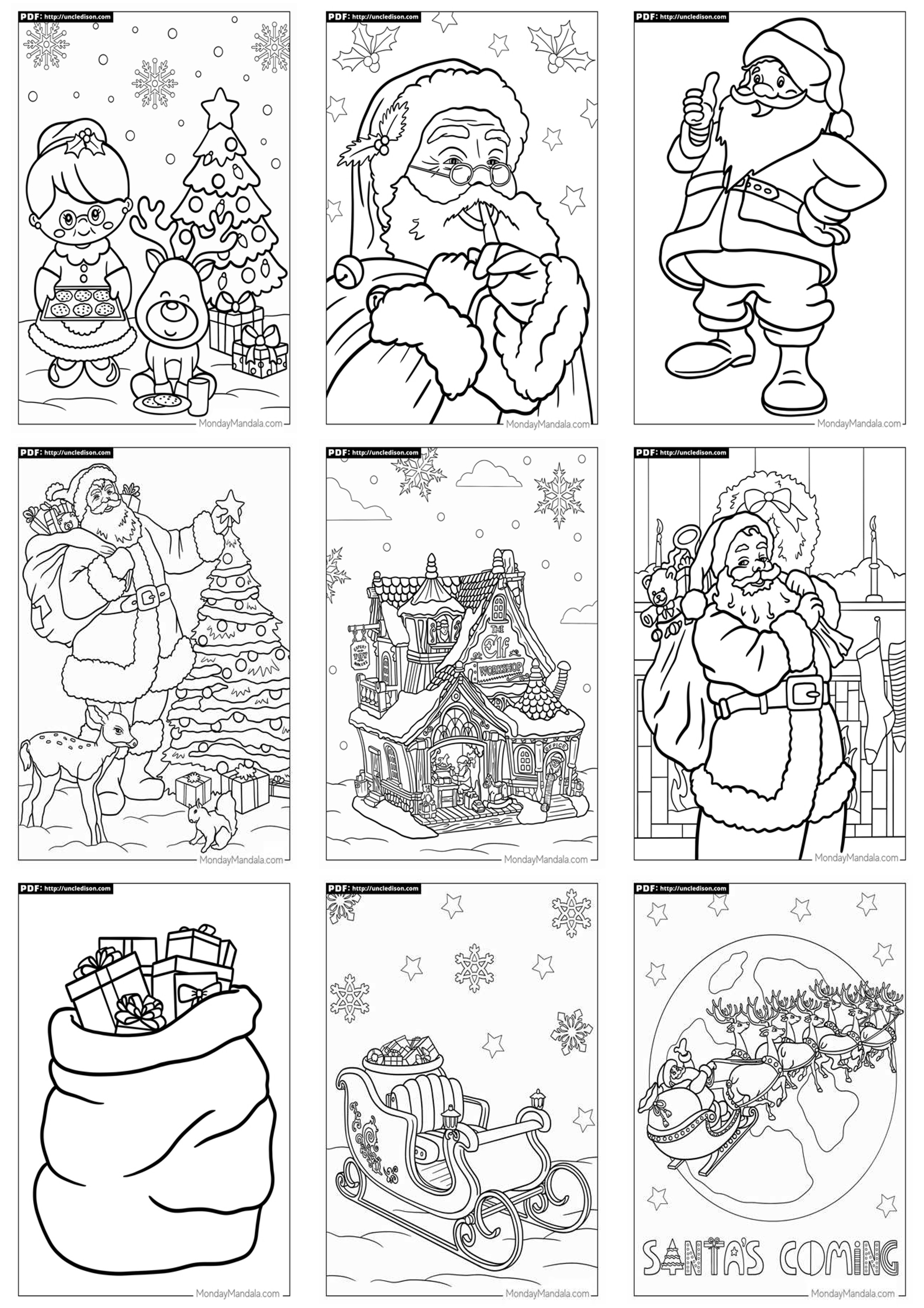이 도안들은 아이들이 크리스마스를 더욱 즐겁게 경험하고 창의성을 키울 수 있도록 디자인되었습니다. 아이들과 함께 익살스러운 산타클로스와 독특한 만다라를 만나, 특별한 크리스마스를 즐겨보세요!