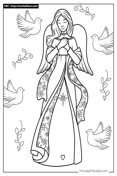 이 도안은 모든 연령층에게 적합하며, 색칠하는 동안 마음이 평화롭고 기쁨으로 가득 차게 될 것입니다. 가족과 친구, 사랑하는 이들과 함께 이 아름다운 도안을 색칠하며, 크리스마스의 특별한 순간을 함께 나누길 기원합니다. 천사의 가호와 함께 행복한 크리스마스를 맞이하세요!