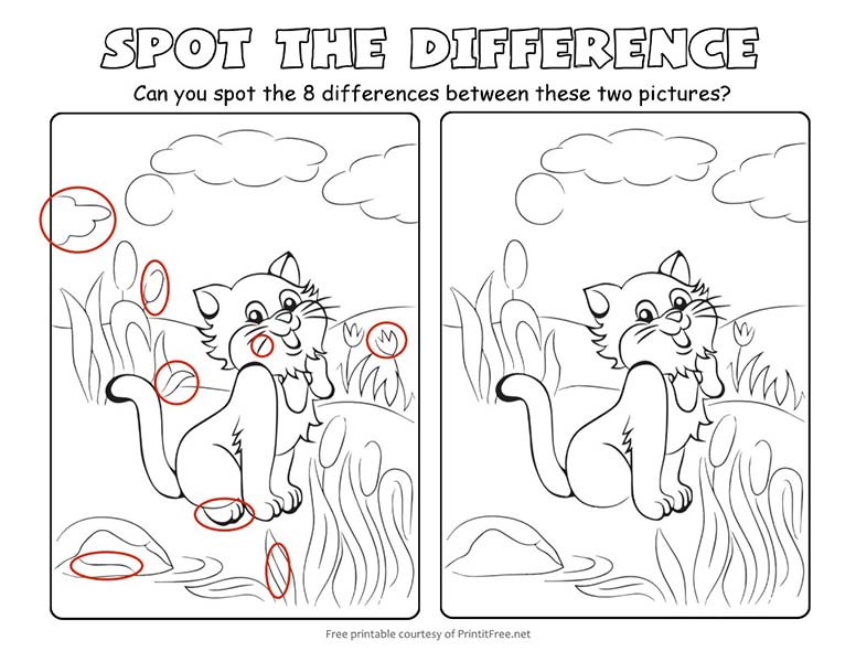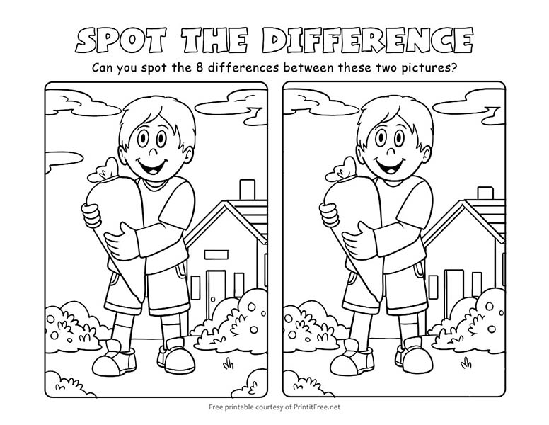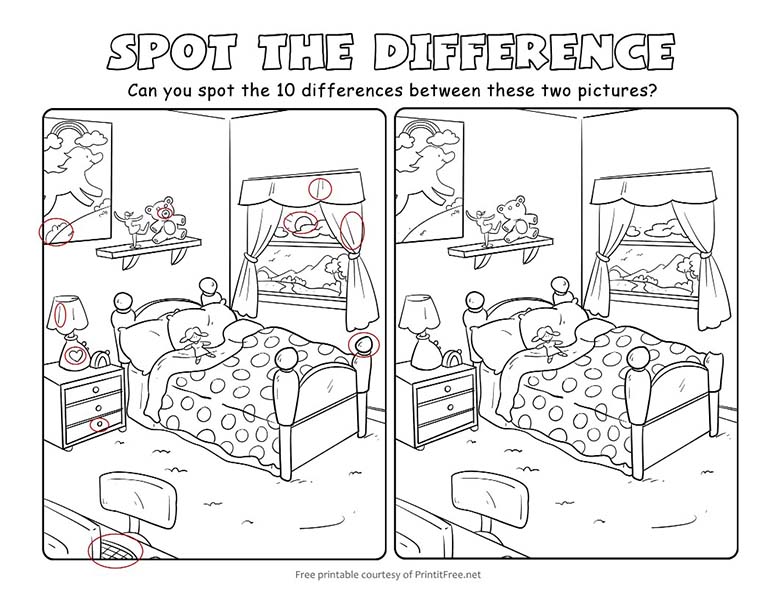이 틀린그림찾기 게임은 문제와 답안지 2장으로 구성되어 있습니다. 이 도안은 printitfree.net에서 공개한 자료입니다.