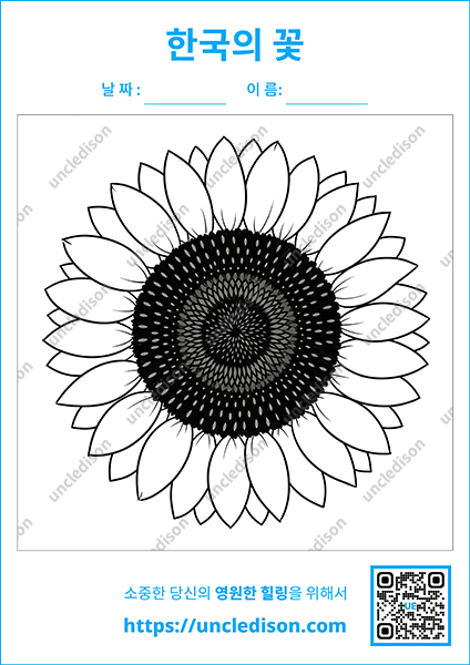 햇살을 닮은 커다란 꽃잎과 중앙의 씨앗 부분을 간결하게 표현한 도안이에요. 아이들이 좋아할 밝고 생동감 있는 구성이에요!