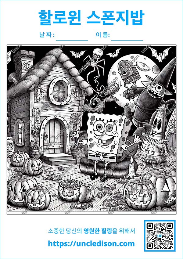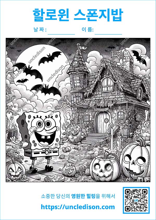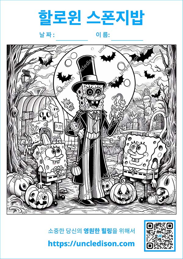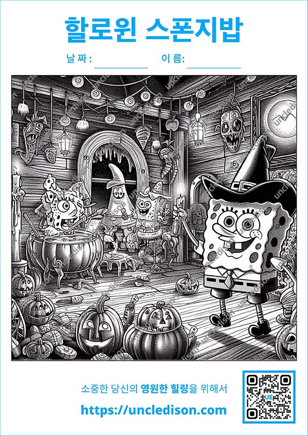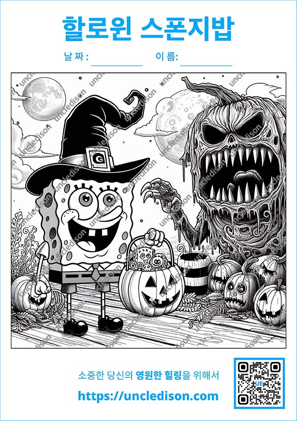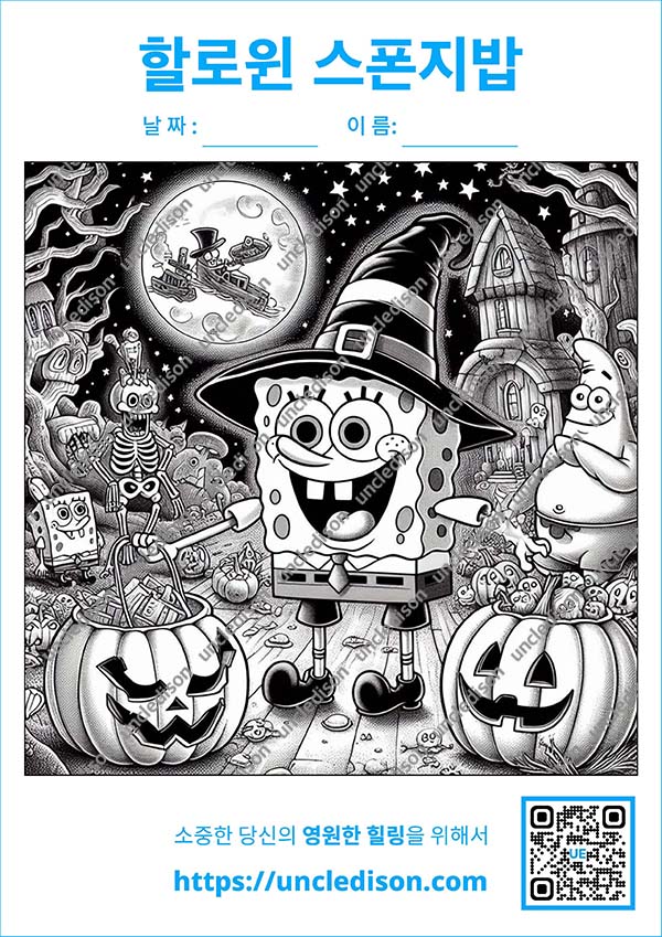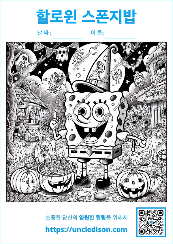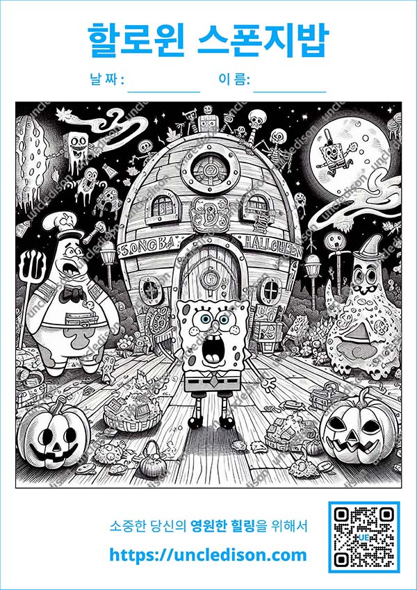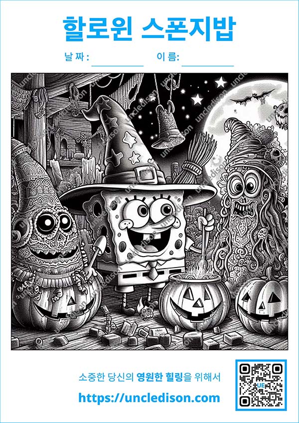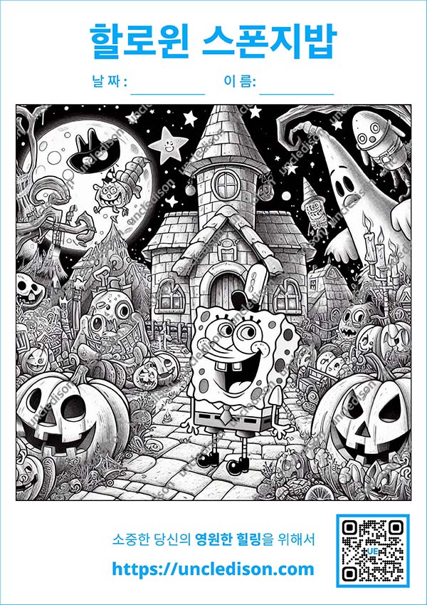 비키니 시티의 거리가 할로윈 분위기로 물들어가는 특별한 계절이에요! 할로윈데이 날짜는10월 31일입니다. 스폰지밥과 친구들의 신나는 할로윈 모험을 담은 10가지 색칠도안을 소개합니다. 무서우면서도 즐거운 이야기들이 여러분의 상상력을 자극할 거예요.