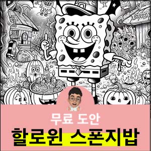 마지막은 스폰지밥의 '할로윈 꿈'이에요. 조금 무섭지만 신기한 꿈속에서 만난 유령들과 괴물들, 그리고 믿음직한 친구들까지! 꿈나라의 특별한 분위기를 담아 마음껏 상상하며 색칠해보세요.