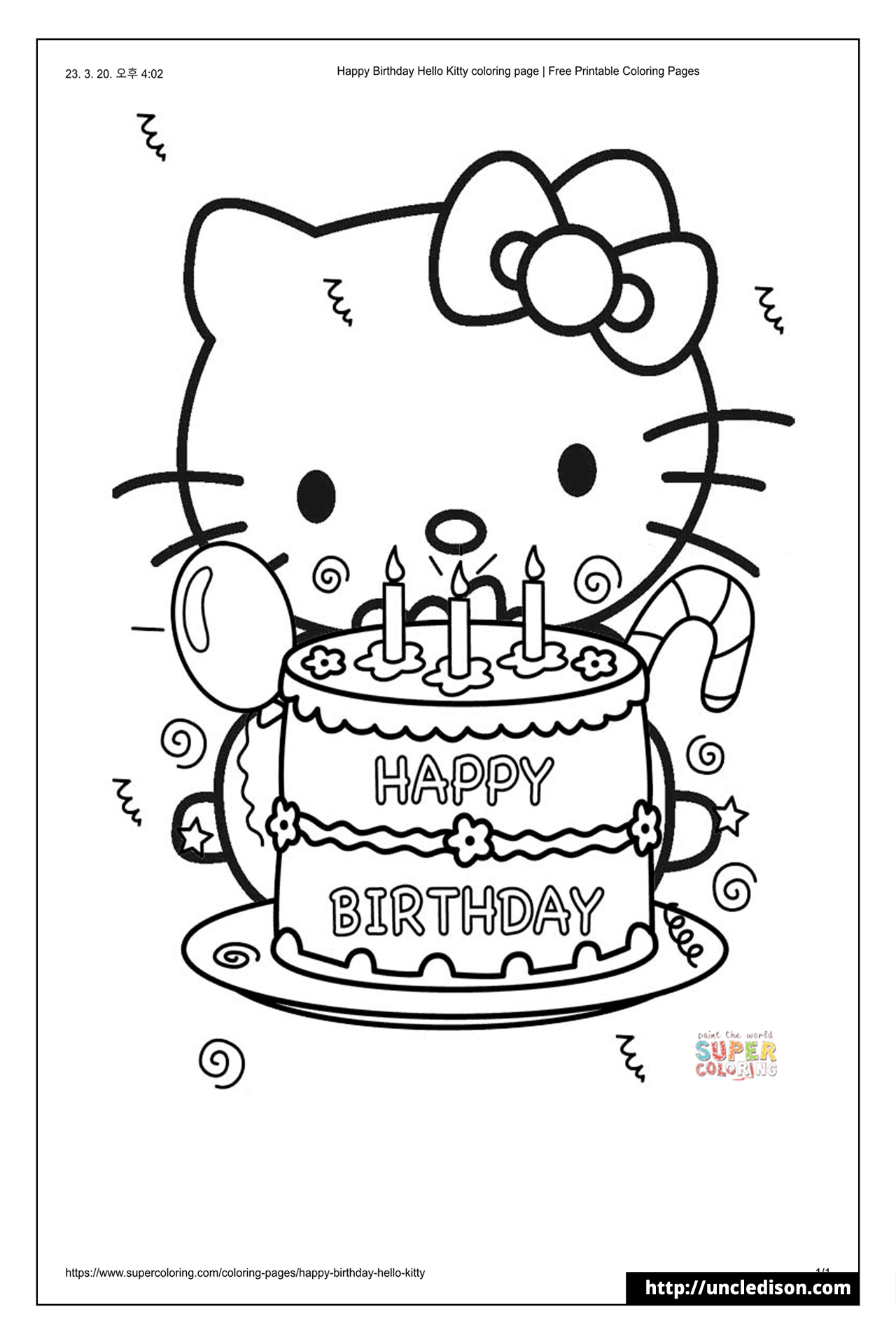 헬로키티 색칠공부 산리오 무료PDF도안