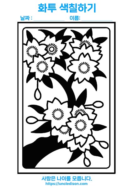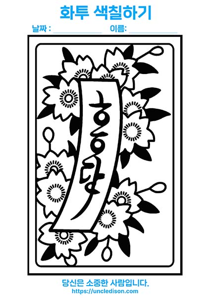 색칠공부도안 컬러링 화투 이미지 색칠하기 프린트 무료다운 어르신 노인 유아 인지프로그램 치