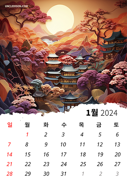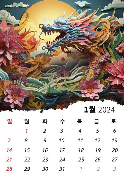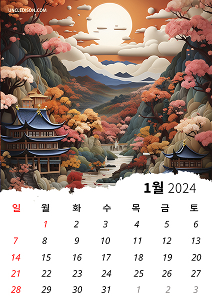 새해가 밝았습니다! 2024년, 갑진년, 청룡의 해를 맞아 더욱 특별한 순간을 기록할 수 있는 달력과 핸드폰 배경을 무료로 선물합니다. 이번에는 자연의 아름다움을 담아 유화와 키리가미 스타일로 디자인했습니다. 해, 산, 달이 어우러진 풍경으로 새로운 해를 맞이하세요.