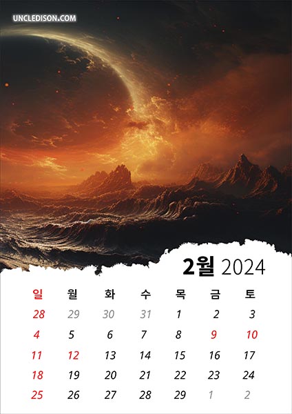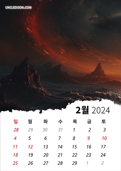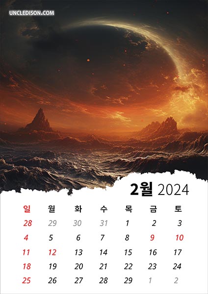 [2024년 2월 달력 00001]는 핸드폰 배경화면으로 설정해 사용하세요. (이미지 사이즈 1170*2532)