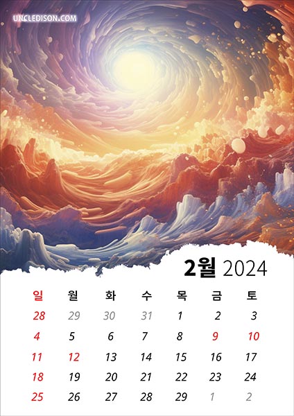 [2024년 2월 달력 프린트 001] 는 A4용지크기로 프린트해서 사용하세요. (이미지 사이즈 2480*3508)