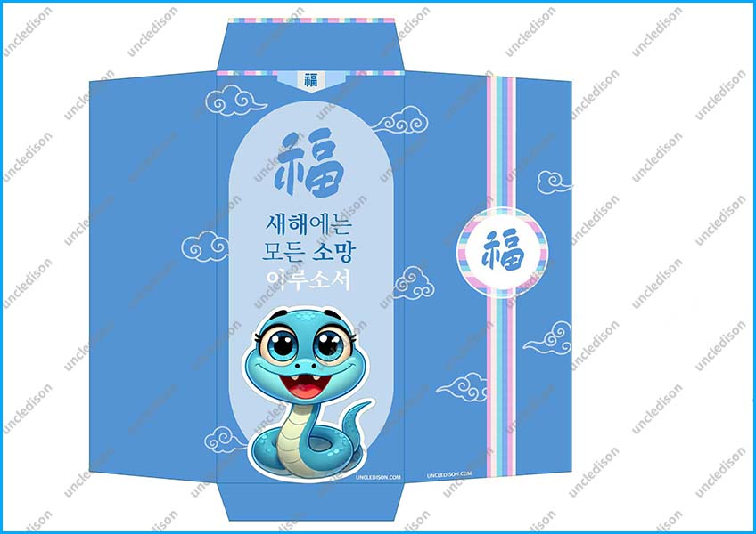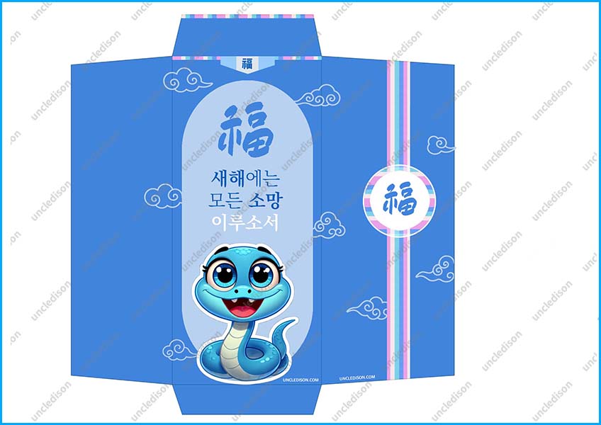 이 세뱃돈 봉투는 그저 단순한 돈 봉투가 아니라, 2025년 푸른뱀의 해가 가진 깊은 상징적 의미를 담은 작은 예술 작품입니다. 전통과 현대, 지혜와 희망이 만나는 특별한 순간을 함께 나누고자 합니다. 🐍✨🔮